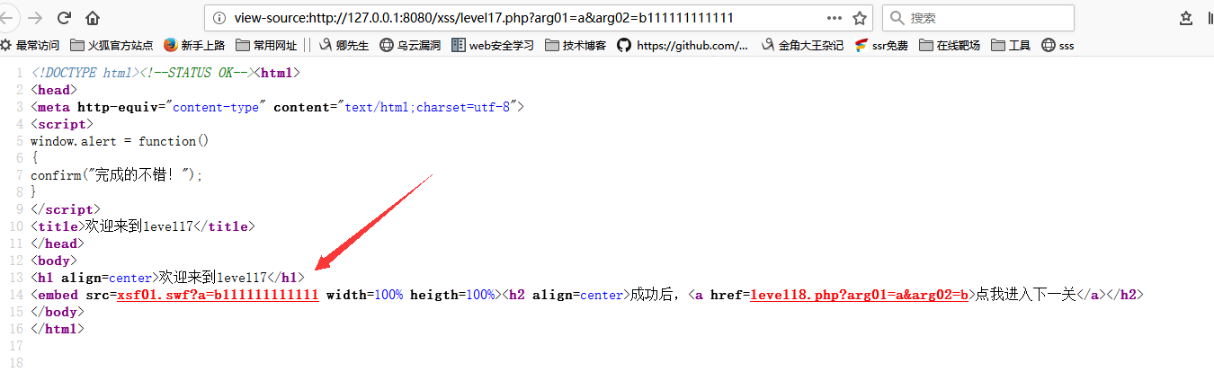 第三关依然是一个输入框。输入一段js代码看html,输入和输出做了转义